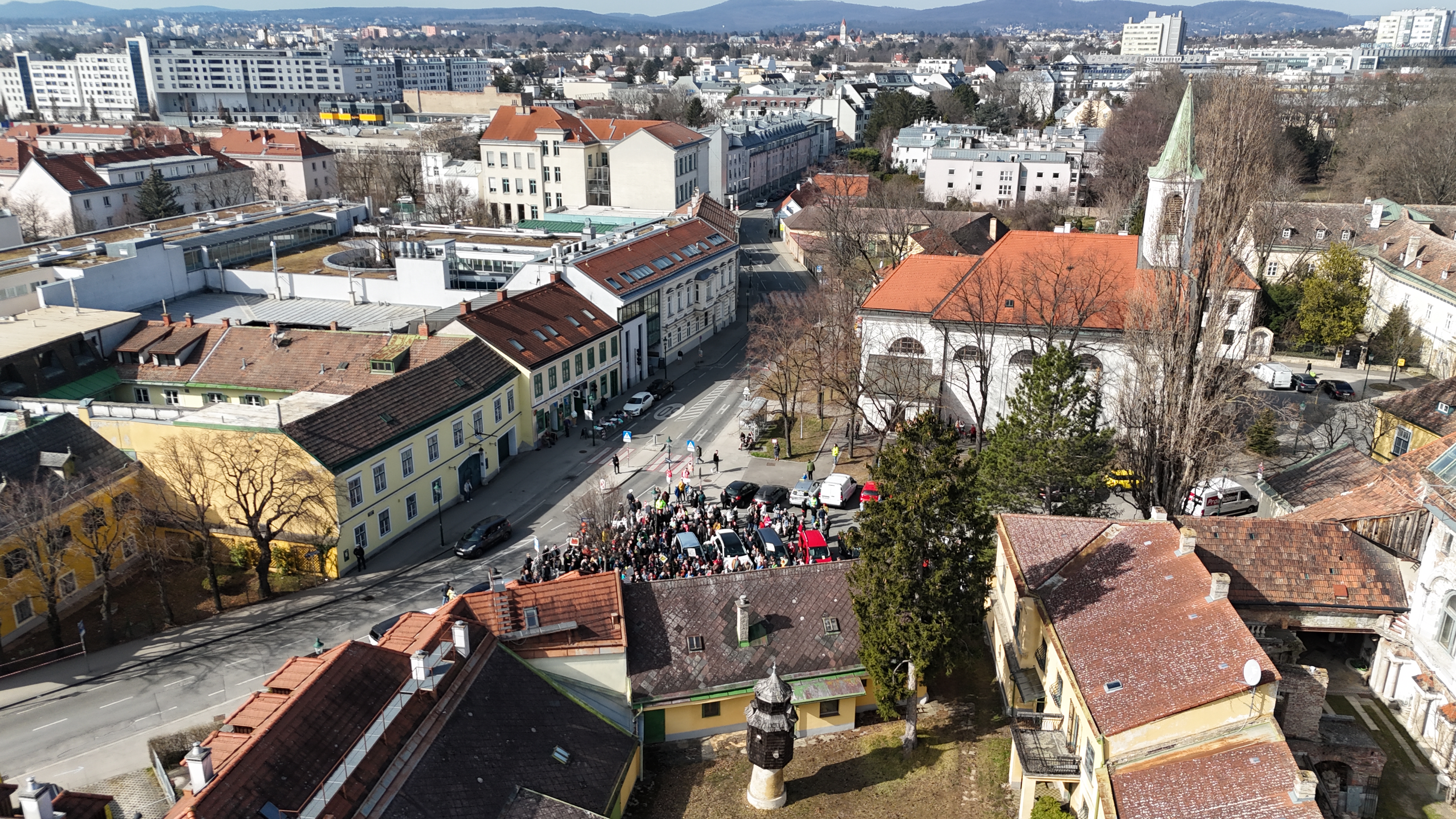 2025-03-08: Video: Etwa 150 Personen demonstrierten heute am Khleslplatz für den Erhalt des historischen Platz